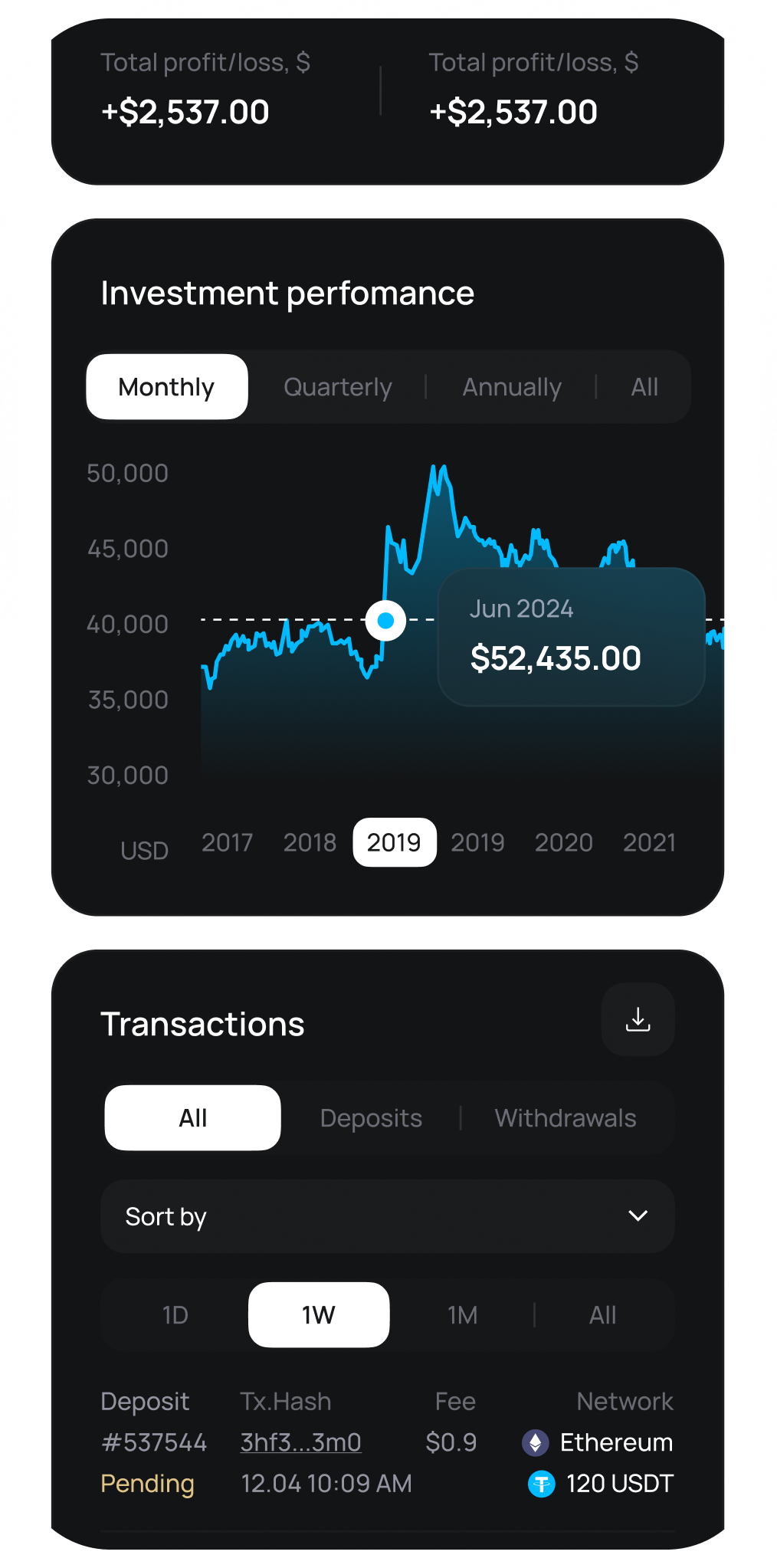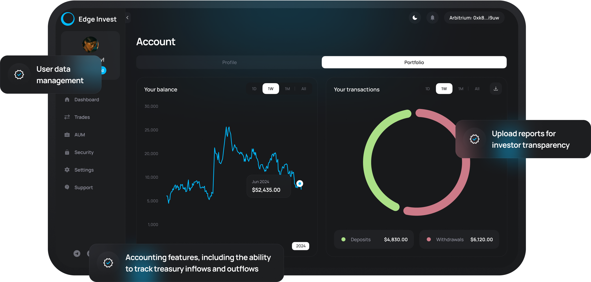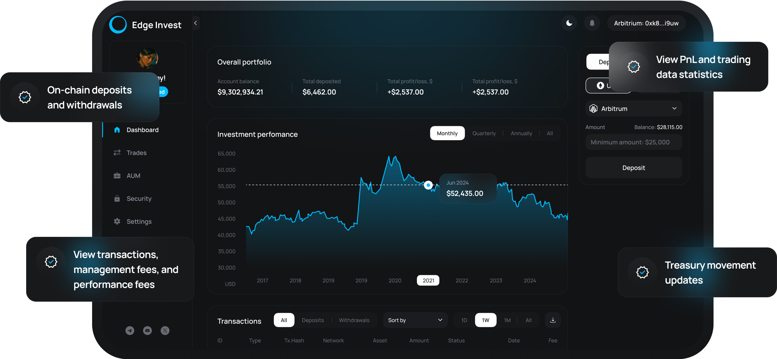 View transactions, management fees, and performance fees